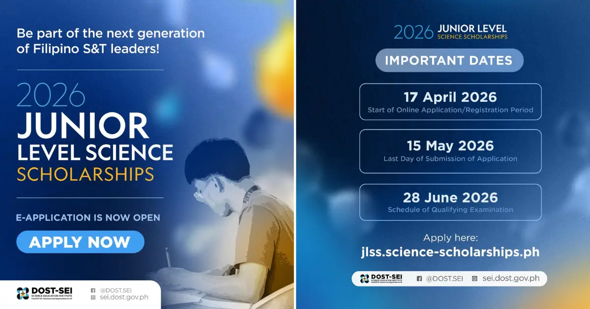 The Department of Science and Technology – Science Education Institute (DOST-SEI) is now accepting applications for the 2026 Junior Level Science Scholarship (JLSS).